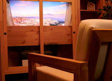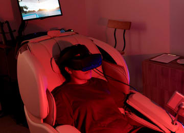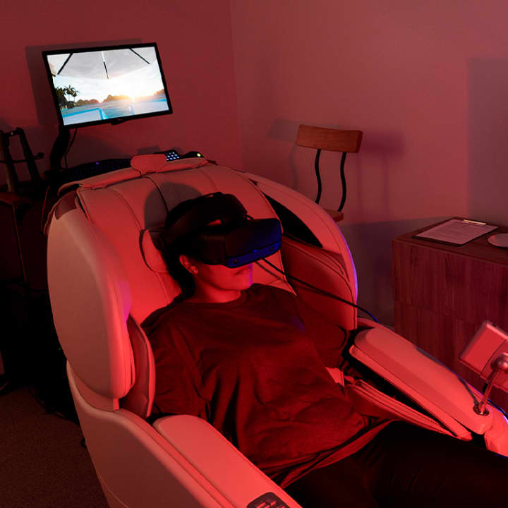 Immerse yourself in the ultimate relaxation experience. Esqapes is the world's first VR augmented massage center and the only place you can enjoy a full body massage while orbiting the Earth, floating on the ocean or lounging in a Koi pond under palm trees! This is an unparalleled immersive relaxation experience. Using a combination of proprietary software, virtual reality hardware, automated massage programs and traditional wellness practices, Esqapes transports guests to a place of peace, calm and total relaxation. In short, itβs like a mini vacation at a fraction of the cost!