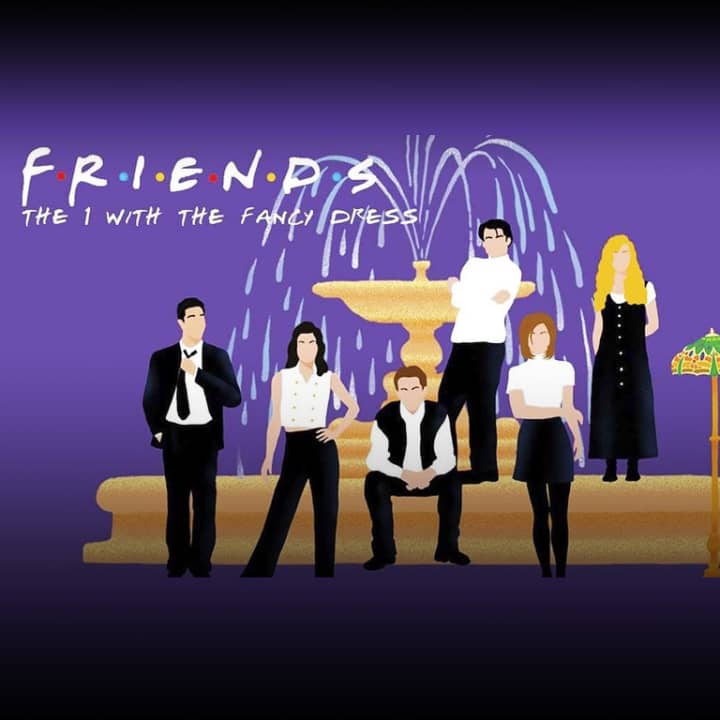 π Dress code: this is a fancy dress party! Take your inspiration from the show (The One when Joey wears Chandler Clothes, The One with the Holiday Armadillo, The One with Ross's Tan...)