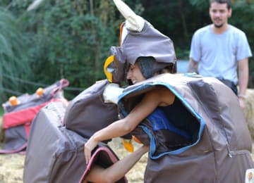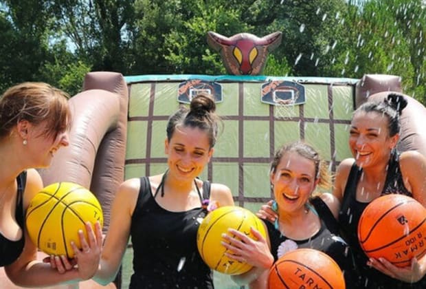 ¿Tienes ganas de movimiento y diversión? ¡Este es tu plan! Spain Games es una actividad al aire libre que consta de 10 juegos diferentes, secos y con agua, de competencia y trabajo en equipo. Como participante lucharás en traje de sumo, bajaras a toda velocidad por el tobogán con agua para atrapar a los pollos locos o tratarás de esquivar la barredora gigante para ganar. La competición se realiza entre dos equipos, que cuentan con un capitán por bando, y la amigable compañía de un monitor que os explicará las reglas, normas de seguridad y hará que la actividad sea aún más dinámica. ¿Estás listo para darlo todo?