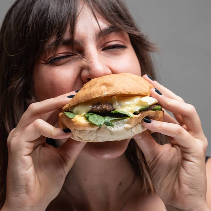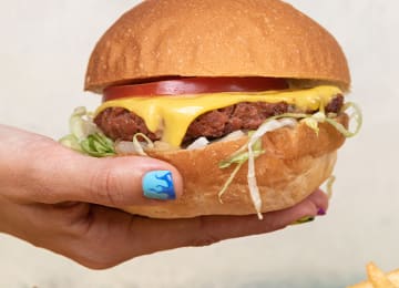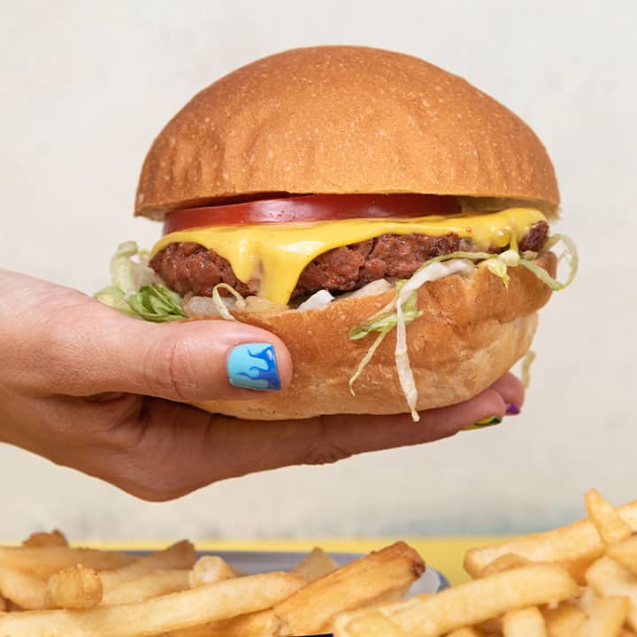 🎫 Heura Combo (opción veggie) para 1 persona con Heura Burger, cebolla caramelizada, queso fundido, lechuga iceberg y tomates