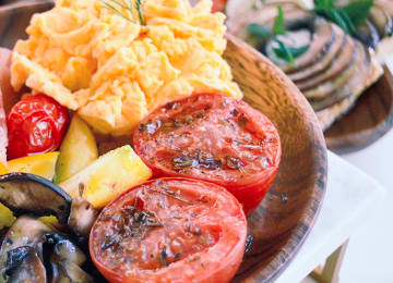 - Salada de legumes grelhados e queijo Hallumi