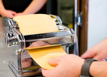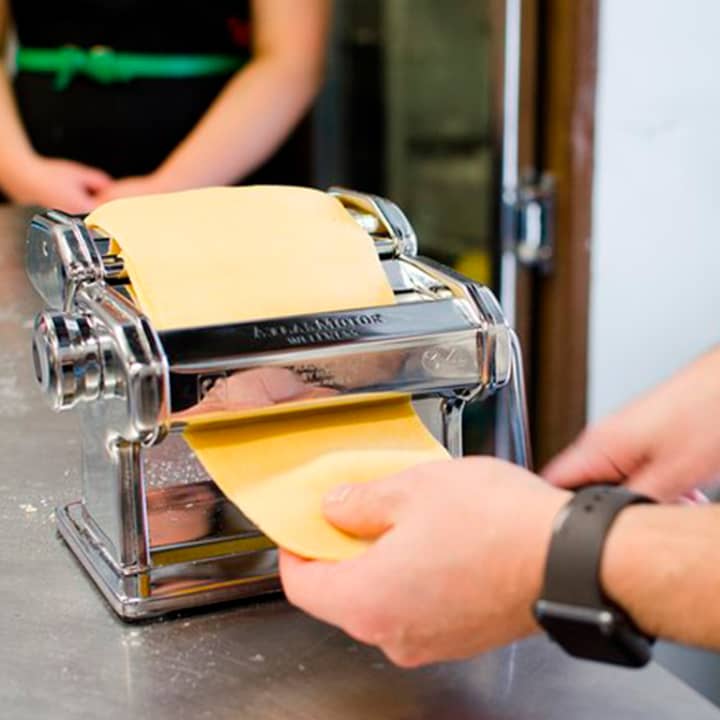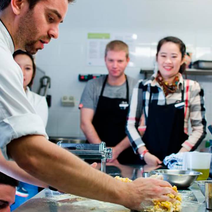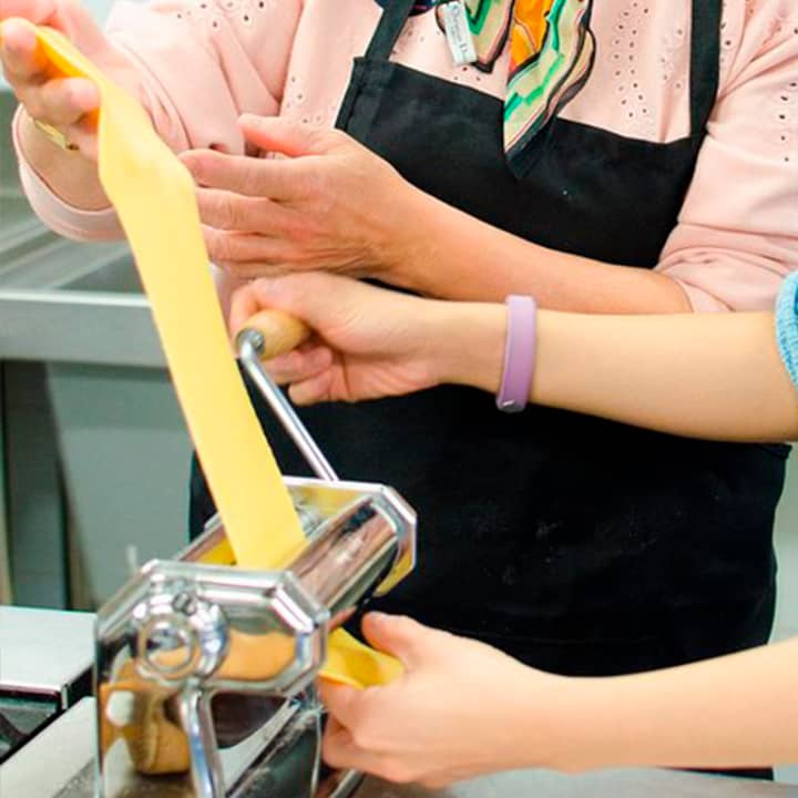 🎫 Ticket for 1 on the Fresh Pasta Class with Italian Chef, including all kitchen and cooking equipment, free apron, booklet with recipes and tasting of the pasta prepared matched with Italian sauces and a complimentary glass of wine and dessert.