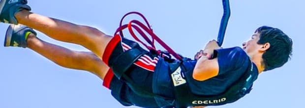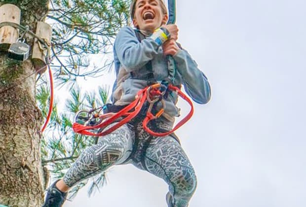 That little perch high above the ground – that’s where you’re going. Up that rope ladder and onto the platform, you’re tethered to a jump line and then things get real simple. You go over the edge. Step forward or backwards, it doesn’t matter. Either way, gravity wins; safely, of course. Don't miss this unnerving plunge from 40ft up at Maple Ridge!