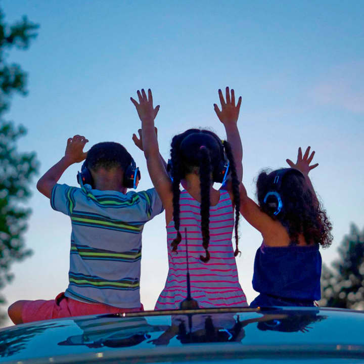 - 2 DJs on separate channels simultaneously beam music to your car at the same time. Tune in via wireless headphones and vote for your favourite by singing along the loudest. Boys vs girls, adult throwbacks vs the latest kids favorites!