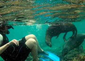 A full-day snorkel rental package is a great way to explore the underwater world of San Diego on your own. With this package, you'll be provided with all your gear to get you in the water. On this adventure you will see amazing marine life such as garibaldi, sealions, shovelnose, leopard sharks, and much more!