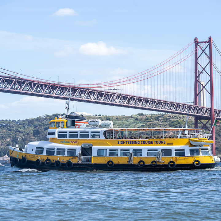 Não temos um yellow submarine mas temos um yellow boat e ao sunset! Um barco ao pôr-do-sol que te levará num passeio pelo Tejo ao pôr-do-sol para que possas apreciar Lisboa e as suas colinas ao entardecer. Desfruta da vista impressionante de Lisboa a partir do rio e deslumbra-te com esta nova perspetiva da cidade a partir da água porque à "hora dourada", tudo tem mais encanto!