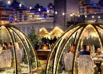 Get snug in Winterland's private forest as you spend a few hours wining and dining in the comfort of your very own Igloo or Alpine Cabin. It's the ultimate atmospheric space: a place to entertain, celebrate a birthday, enjoy time with colleagues, or settle in with friends and family for a few hours in your own secret haven. Get snug and enjoy this Austrian Mountain experience with signature cocktails, Schnapps and fondue!