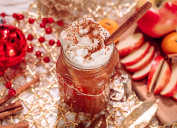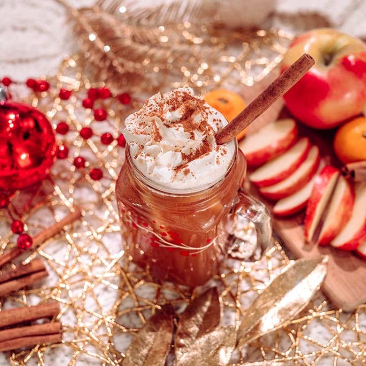 - Spiked Hot Apple Cider with whipped cream, caramel syrup and sprinkles