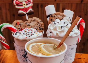 - Boozy Hot Chocolate with whipped cream, chocolate syrup and sprinkles