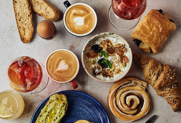 🎫 Brunch con una copa, una bebida caliente, zumo, dulce y plato salado para 1 persona
