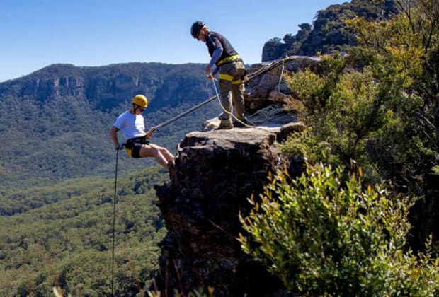 This spectacular half day abseiling tour is simply the best action packed half day adventure you can have in the Blue Mountains. You start with a smallish 5 metre abseil to ease you in. Your instructors are close at hand to encourage and explain the techniques. From here you head straight on to 15 metre abseils which you can do a couple of times. Then with your instructor explaining each step, you progress through to our 30 metre adrenaline pumping overhanging abseil. The setting is the beautiful Blue Mountains National Park, making it both a scenic and exciting adventure!