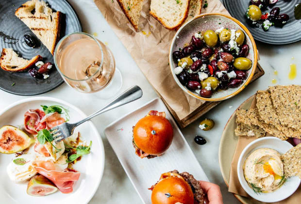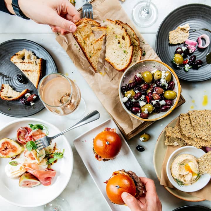 - Beetroot dip, brown rice and quinoa crackers, roasted sweet potato, grilled broccolini, zaatar crusted avocado, kale, poached eggs and house made falafels