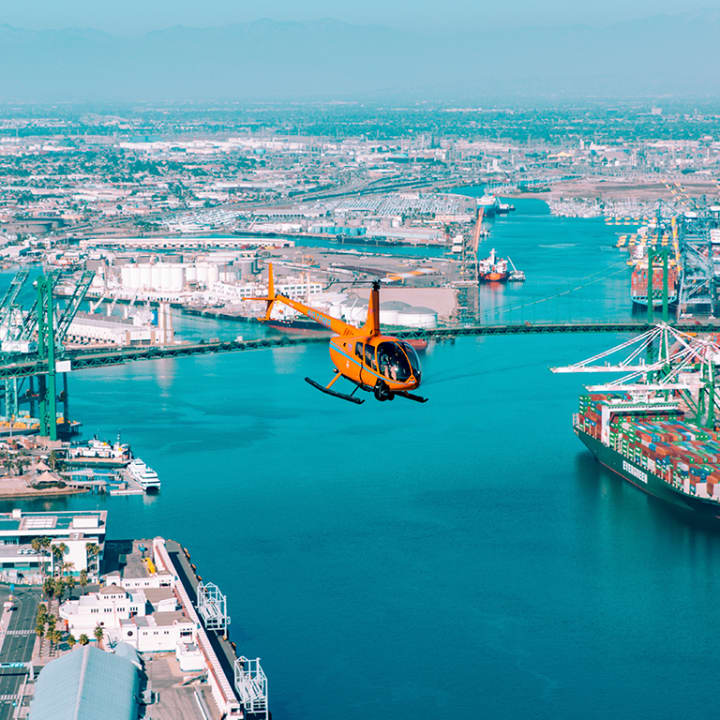 While not quite as mysterious as the Bermuda Triangle, the OC Triangle is far cooler! From ACI Jet, you'll fly in style in a Robinson R44 or—should you go Deluxe—a Robinson R66 Turbine helicopter with in-flight treats included. For approximately 20-25 minutes, fly over the classic OC beaches and the beautiful Pacific coastline of Southern California. You might spot some whales or dolphins, see a historical US battleship, or even fly over your home and your favorite spots over Orange County!