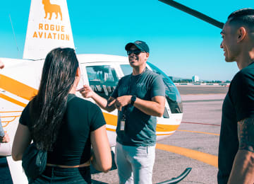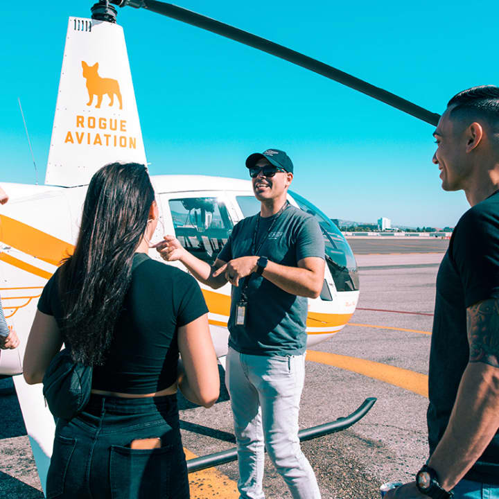 🎫 Deluxe Helicopter Tour in a Robinson R66 for 2, 3 or 4 people - includes in-flight snacks, a #FLYROGUE t-shirt, your own set of Rogue Aviation wings, and #FLYROGUE stickers
