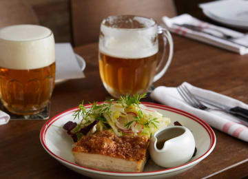 - Crispy Pork Belly apple, kohlrabi, fennel, black beer & honey sauce