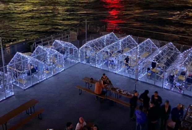 Enjoy your very own private glasshouse on the pier at Watermark Bar! A stunning, sunny 10,000 square foot venue perched at the end of the beautifully proportioned double-level Pier 15, Watermark offers an exceptional panorama of the Brooklyn and Williamsburg bridges and Brooklyn skyline. Make the most out of these incredible views as you and your group enjoy some rosé wine in your very own private glasshouse! You'll also have the option to order yummy bites like the Watermark Burger or the crispy coconut shrimp, and cocktails like Smoke On The Water, Sweet Home Alla Roma or Gold On The Ceiling. It's the perfect spring experience to share with friends and family!