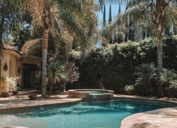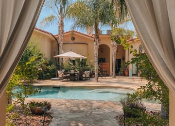 🍵 Herbal tea, snacks, and relaxation on a poolside outdoor patio