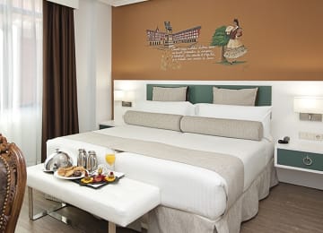 Imagina dar un paseo por las calles madrileñas, admirar sus inolvidables monumentos y disfrutar de su frenético ritmo, y al acabar el día, poder dormir en un hotel en el corazon de la Gran Vía... Si quieres disfrutar de una experiencia única e inolvidable en el centro de Madrid... ¡Tienes que visitar el el Hotel Mayorazgo 4*! Pasa una noche mágica con quien quieras en una de sus habitaciones temáticas, inspiradas en los monumentos de la ciudad. Relájate en sus lujosas estancias, visita los rincones del hotel y no tengas prisas por volver a la rutina. ¡Disfruta de una noche mágica en una habitación temática!