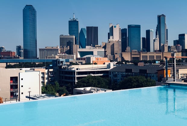 π Amazing skyline views of Dallas from the rooftop of CANVAS hotel