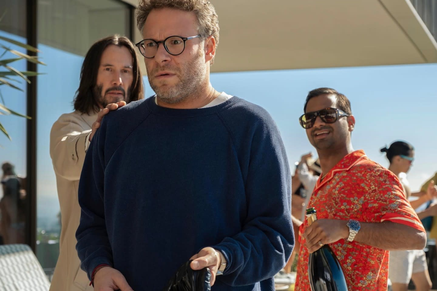 In GOOD FORTUNE, a well-meaning but rather inept angel named Gabriel (Keanu Reeves) meddles in the lives of a struggling gig worker (Aziz Ansari) and a wealthy venture capitalist (Seth Rogen).